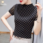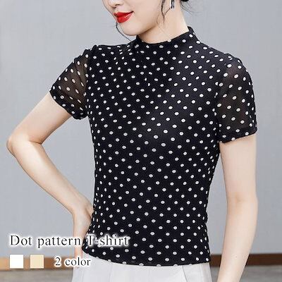 Tシャツ レディース ドット柄Tシャツ ゆったり カジュアル ティーシャツ おしゃれ 無地 かわいい 7分袖 Vネック 大人 トレーナー 春 半袖 ジム ブラウス スポーツ 5分袖 ロング ブランド | DOKO-ME