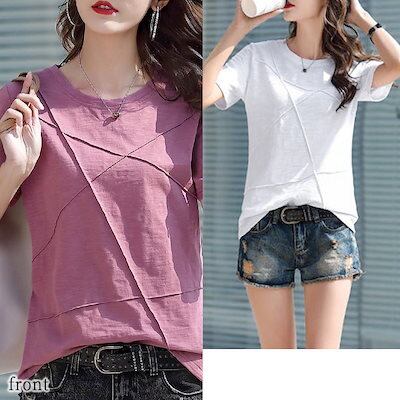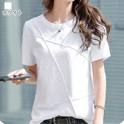 Tシャツ レディース ラウンドネックTシャツ ブラウス 5分袖 春 スポーツ ゆったり ブラック 40代 ロゴ カジュアル 7分袖 薄手 Vネック かわいい ティーシャツ 大人 人気 涼しい シャツ | DOKO-ME