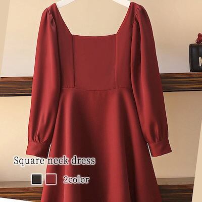 ワンピース レディース スクエアネックワンピース 20代 安い アウトドア かわいい 韓国 前開き ロング 40代 ルームウェア しっかり 50代 人気 Aライン ニット 薄手 カジュアル トップス | DOKO-ME