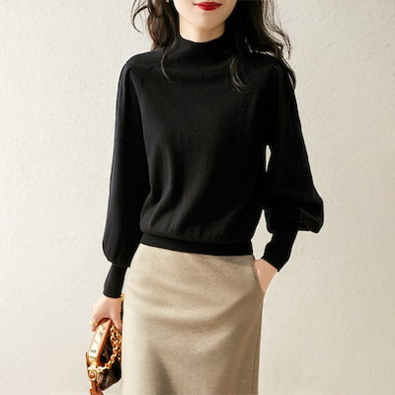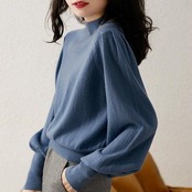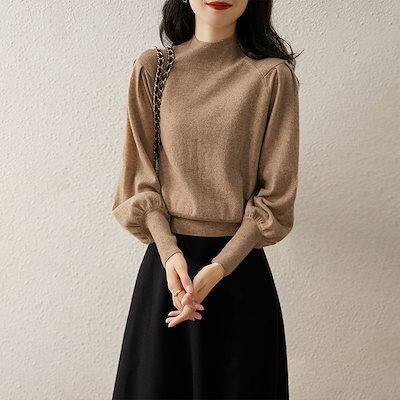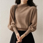 ラウンドネック ジャンパー 超人気 ニットジャンパー レディース 長袖 秋冬 ニット 丸首 アームホール付き ふわふわ パフ