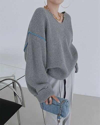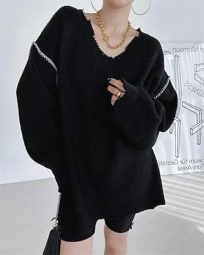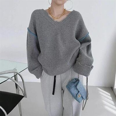 セーター レディース 春秋 ニットセーター ニット 長袖 カットソー リブニット vネック 無地 プルオーバーセーター プルオーバー トップス ゆったり カジュアル ニットトップス おしゃれ 韓国風 | DOKO-ME