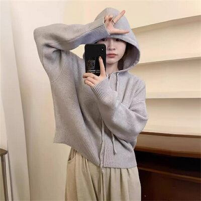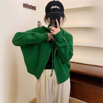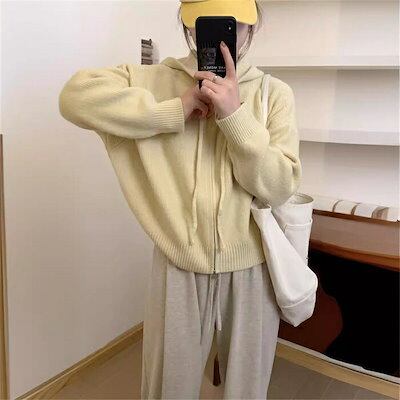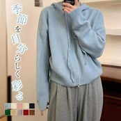 ニットパーカー ニットセーター レディース 秋 冬 ニット 長袖 洗えるニット フード付き トップス 前開き ダブルジップ 無地 お洒落 シンプル 体型カバー 上品 大人 ママコーデ 通勤 OL 20 | DOKO-ME