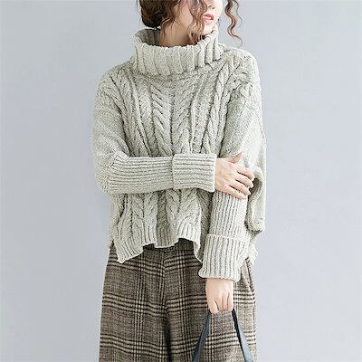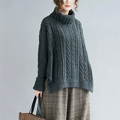 セーター レディース 秋冬 長袖 無地 ケーブル編み ハイネック タートルネック トップス ゆったり 着?せ 体型カバー 通勤OL プルオーバーセーター プルオーバー 厚手 おしゃれ カジュアル シン | DOKO-ME