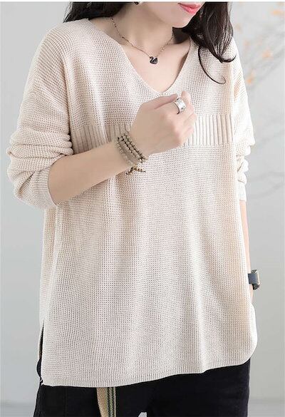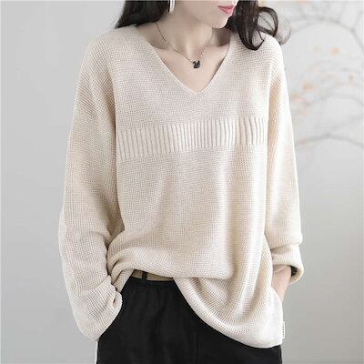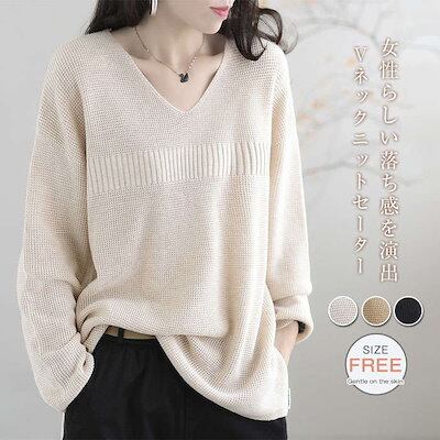 ニット レディース トップス 長袖 秋 冬 ゆったり Vネック プルオーバー オシャレ ライトニット ウール シンプル リブ ニット リブニット カットソー ニットウェア セーター 無地 通勤 オフィ | DOKO-ME