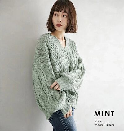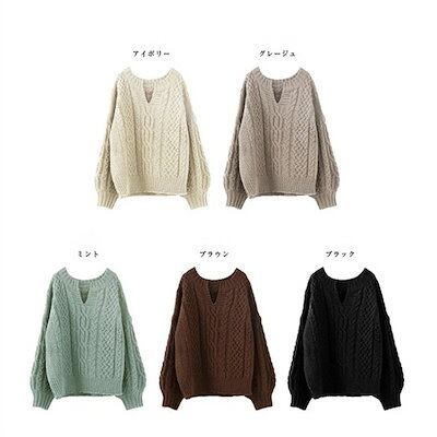セーター レディース 秋冬 ニット ニットセーター 長袖 vネック ざっくり編み ケーブル編み パフスリーブ プルオーバートップス カットソー 無地 ゆったり 体型カバー 着?せ カジュアル れいめ | DOKO-ME