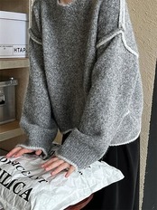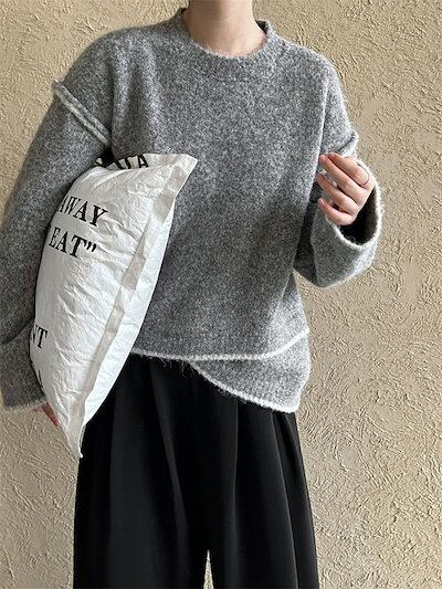 セーター レディース トップス 秋冬 長袖 無地 クルーネック 丸首 プルオーバーセーター プルオーバー ゆったり 体型カバー 大人 女性 カジュアル 通勤OL 通学 おしゃれ シンプル オフィス フ | DOKO-ME
