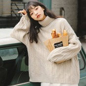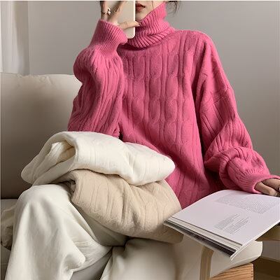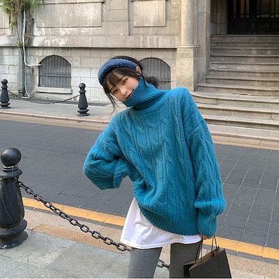 カシミヤタッチ 秋冬定番 リブニット セーター ハイネック レディース トップス 厚手 暖かい ニットカーディガン 秋服 冬服 無地 シンプル ゆったり 高級感 長袖 セーター インナー 韓国ファッシ | DOKO-ME