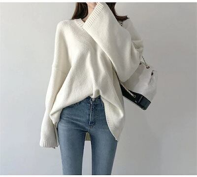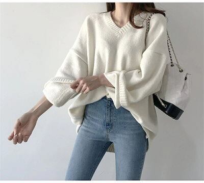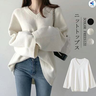 ニット トップス レディース カットソー ニットセーター 長袖 秋 Vネック ニットウエア リブ編み インナー プルオーバー コーデ リブニット 無地 セーター ベーシック カジュアル風 冬 ゆるっと | DOKO-ME