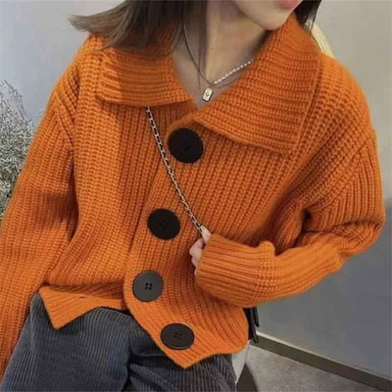 カーディガン セーター セーラーカラー レディース 無地 ニット ニットセーター アウター 前開き 羽織り トップス カットソー ニットソー 秋冬 ビッグボタン 長袖 上着 羽織もの 部屋着 カジュア | DOKO-ME