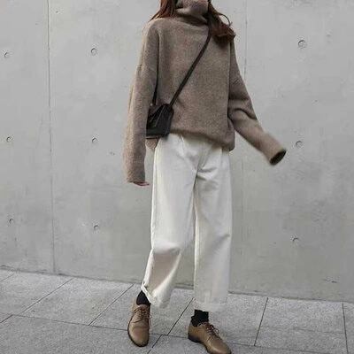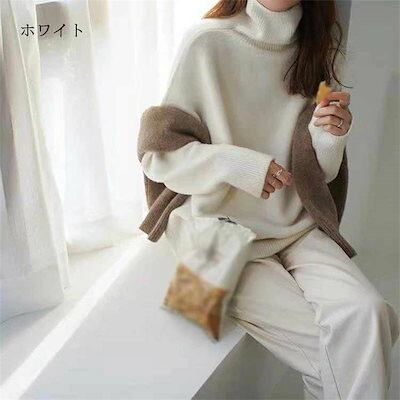 チュニック 長袖 セーター ニット ハイネック ニットセーター レディース ニットソー インナー アウター ハイネックニット 秋冬 無地 カットソー プルオーバー トップス ゆったり 体型カバー ター | DOKO-ME