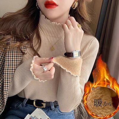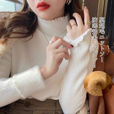 裏起毛 カットソー ニット セーター レディース カットソー 秋冬 ハイネック 裏ボア ニットセーター プルオーバー 無地 インナー 長袖 防寒 タートルネック タイト シンプル 柔らかい 裏起毛ニッ | DOKO-ME