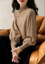 ニットセーター 秋冬 ニット セーター パフ袖 ボトルネック トップス レディース プルオーバー 長袖 トレッチ もっちり セーター 秋 長袖ニット 薄手 洗える ニットソー セーター カットソー リ | DOKO-ME
