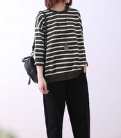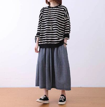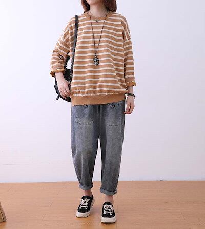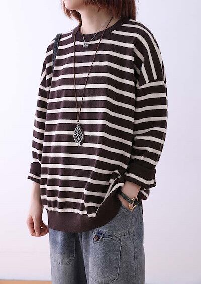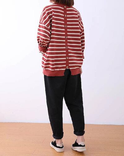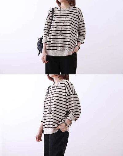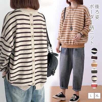 ニット レディース ボーダー プルオーバー 春 秋 バックボタン 長袖 綿 セーター ボーダー柄 カットソー きれいめ お洒落 フェミニン 着回し シンプル カジュアル 体型カバー 柔らかい オシ | DOKO-ME