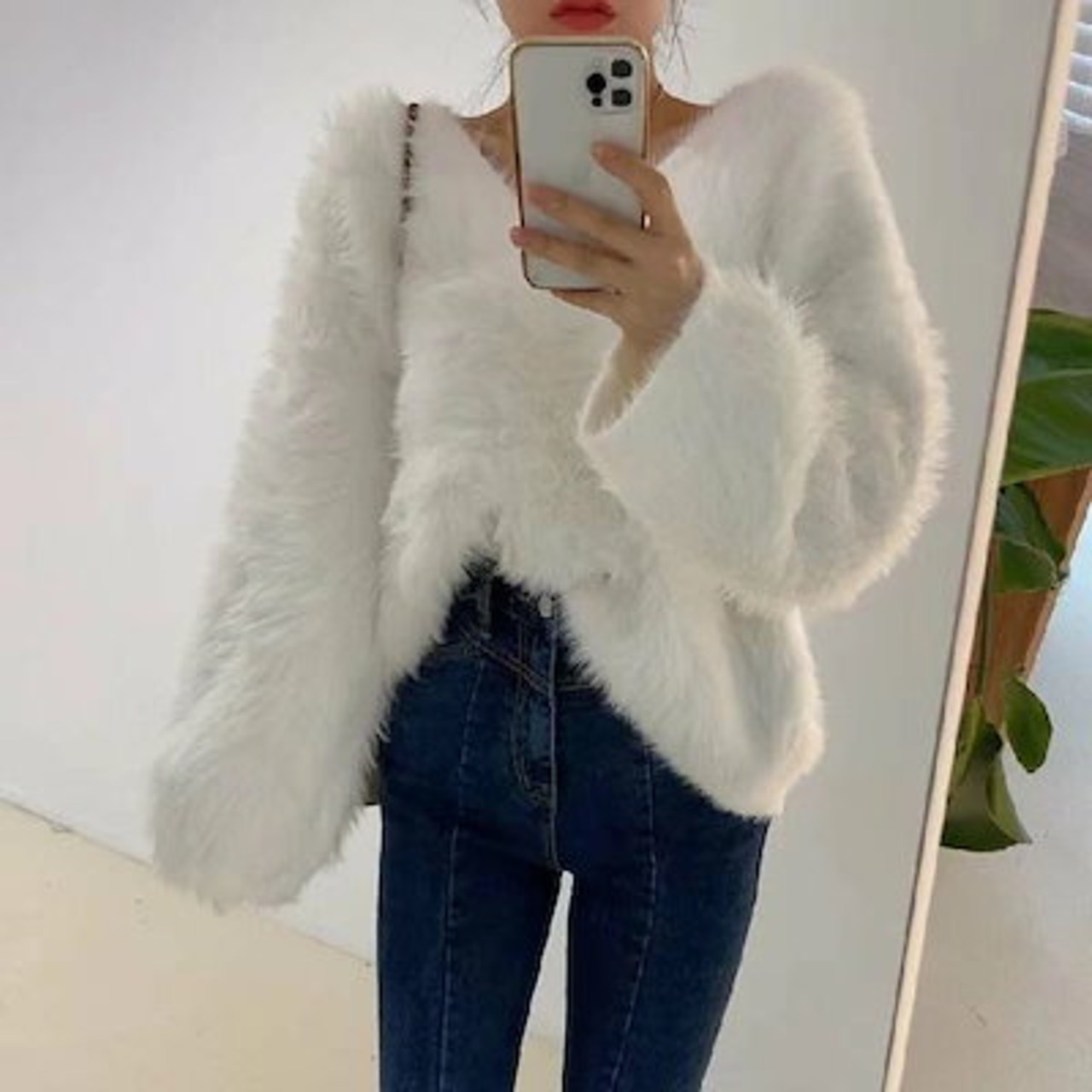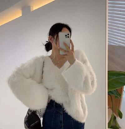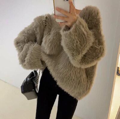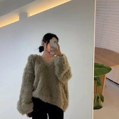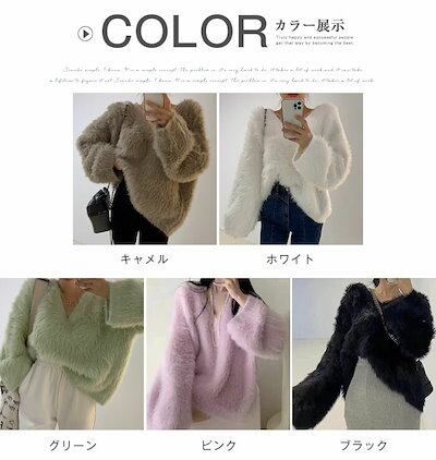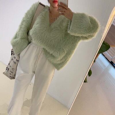 シャギー ニット レディース 秋 冬 セーター 長袖 Vネック ニット カットソー ニット もこもこ ふわふわ きれいめ お洒落 フェミニン 着回し シンプル ゆったり カジュアル ゆるっと 体型カ | DOKO-ME