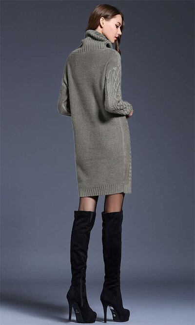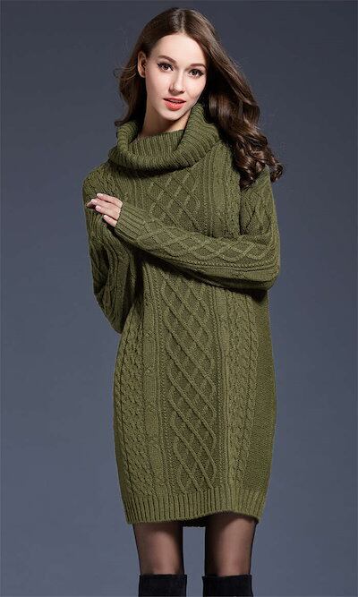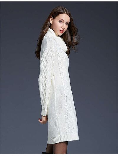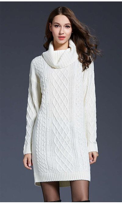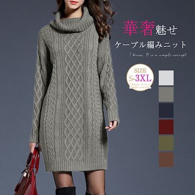 ニット チュニック レディース セーター ハイネック 秋 冬 長袖 ケーブル編み ニットチュニック トップス カットソー きれいめ お洒落 フェミニン 着回し ケーブル編みニット 厚手 シンプル | DOKO-ME