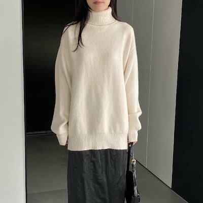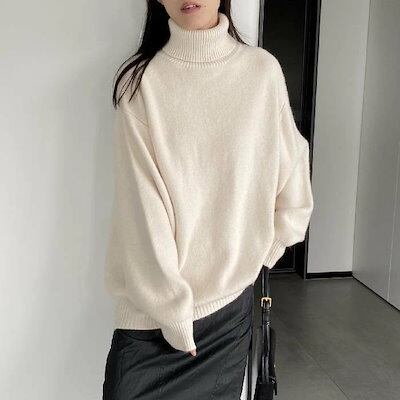 ニット レディース セーター ハイネック 秋 冬 長袖 トップス カットソー きれいめ お洒落 フェミニン 着回し ニット 上品 シンプル カジュアル 体型カバー 柔らかい オシャレ 女性らしい | DOKO-ME