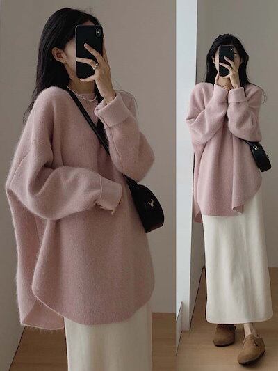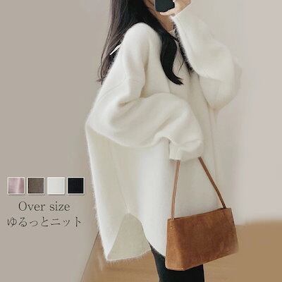 ニット レディース セーター 春 秋 長袖 ニット トップス カットソー きれいめ お洒落 フェミニン 着回し シンプル ビックシルエット カジュアル 体型カバー 柔らかい オシャレ 女性らしい | DOKO-ME