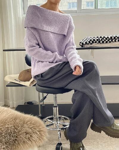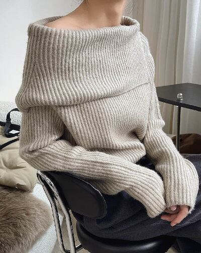 ニット セーター レディース ビックカラー セータートップス 長袖 春 秋 おすすめ トレンド トップス セーター オフショルダー おしゃれ フリーサイズ 着回し シンプル おしゃれ 大人 カジュアル | DOKO-ME