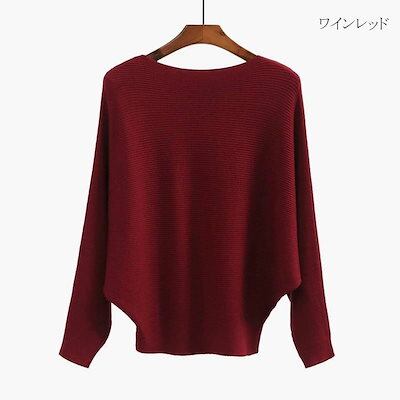 ニット セーター レディース カットソー 長袖 ドルマン プルオーバー ブラウス トップス 秋冬 ニットセーター ボートネック ニット ドルマンスリーブ インナー 長袖 tシャツ 秋 冬 無地 大き | DOKO-ME