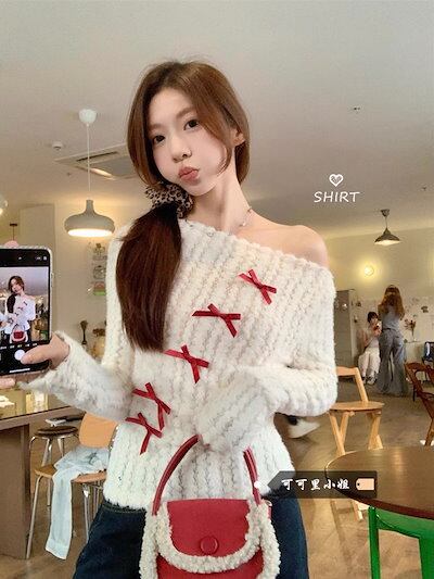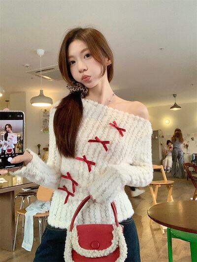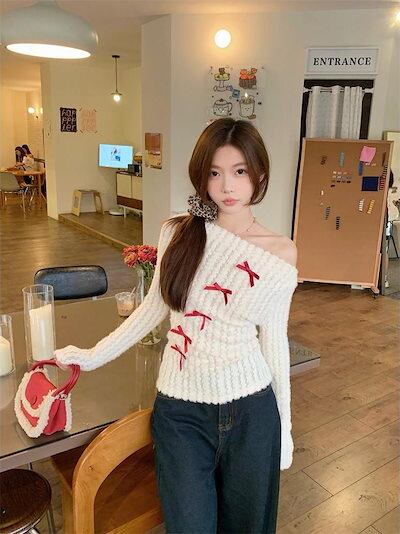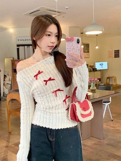 2024秋冬トップス 長袖 ニット セーター レディース ショート おしゃれロンT女っぽスタンド 春カラースタイルアップショート丈ハイカジュアルきれいめV大人ファッション加工フェミニン かわいい | DOKO-ME