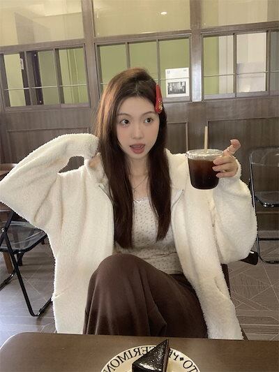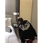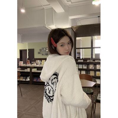 2024 秋冬トップスかわいいパーカー フード付き韓国風長袖ゆったり細見え白黒おしゃれレトロチャッシルエット甘め大人っぽ韓国フルサイズファッション系ルーズレディースサイドお出かけ学生通学トラック羽織り | DOKO-ME
