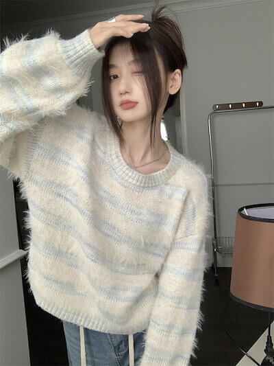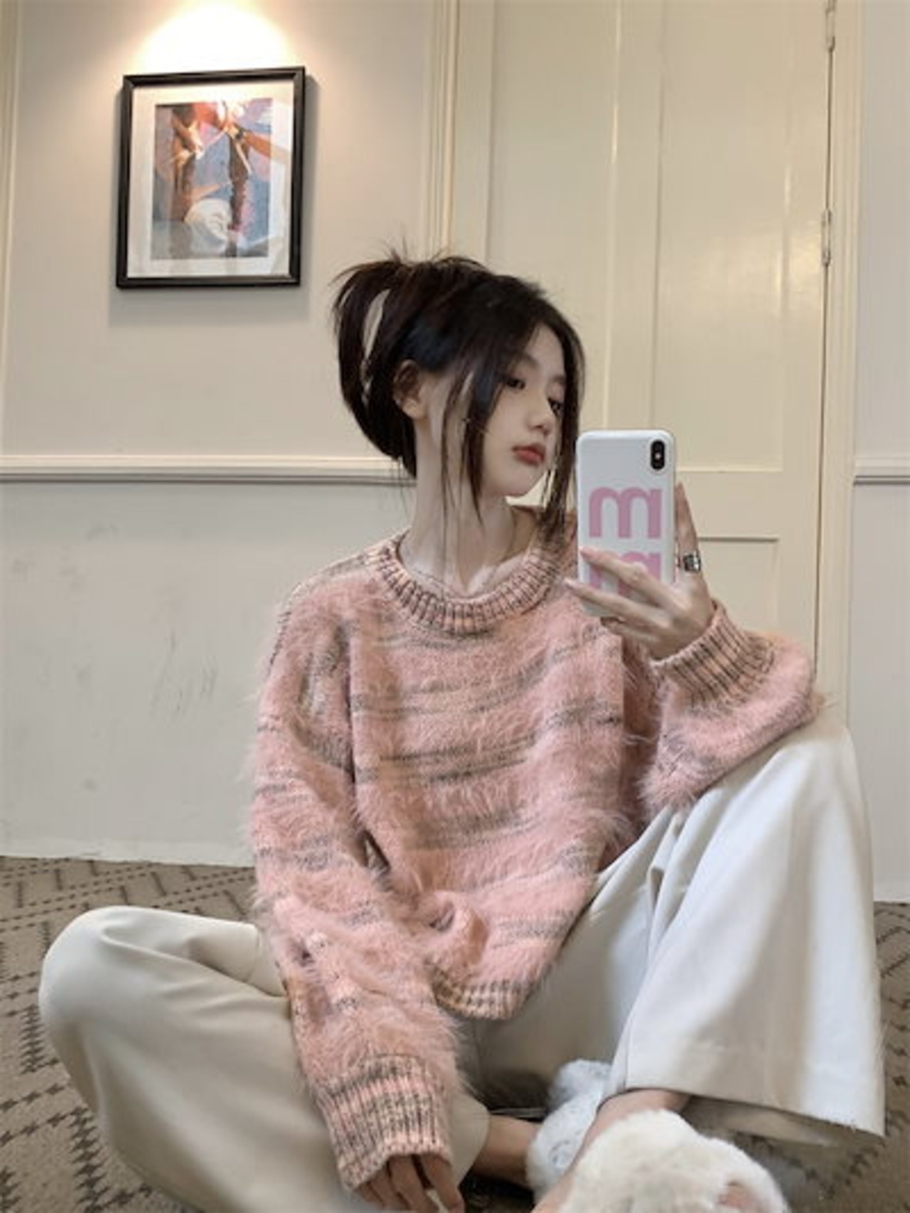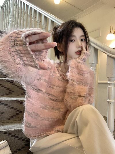 2024秋冬トップス 長袖 ニット セーター レディース ショート おしゃれ韓国ロンT色っぽ 女っぽスタンド 春カラースタイルアップハイカジュアルきれいめV大人ファッション加工フェミニン かわいい | DOKO-ME
