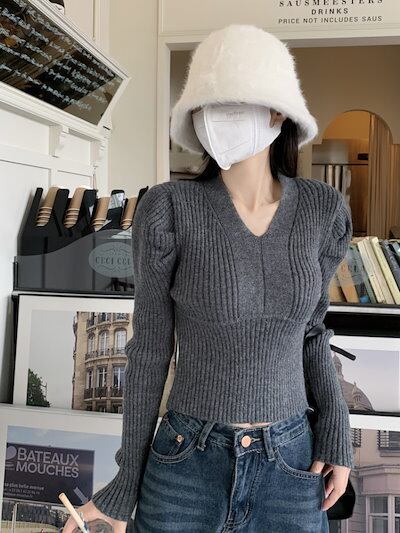 2024秋冬トップス 長袖 ニット 韓国トレンドコーデ セーター おしゃれ 色っぽ 女っぽ 丈カジュアルアップネックプルオーバーきれいめ大人系ファッションレディーススリーブアップフェミニン フレンチ | DOKO-ME
