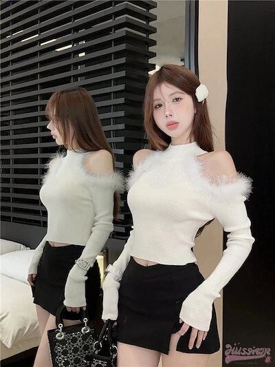 トップス 長袖 ニット セーター レディース ショート おしゃれ 秋冬春カラバリハーフカラースタイルアップロンT色っぽ 女っぽスタンド ハイカジュアルきれいめ大人ファッション加工フェミニン フレンチ | DOKO-ME