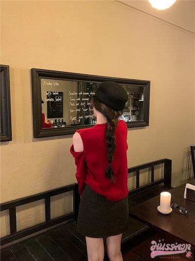 2024春夏トップス ニット セーター オープンショルダー 肩出し ラウンドネック 長袖 春 ゆったり 韓国ファッション レディース おしゃれ かわいい キュート カジュアル お出かけ