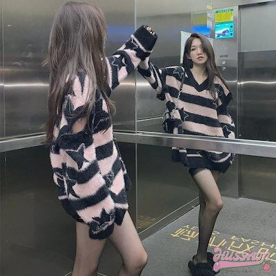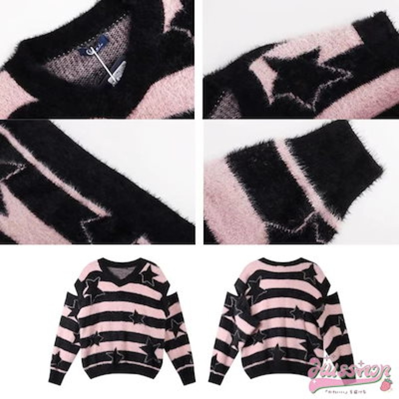 アレンジが楽しめる 2way サイズ ラインニット 半袖 長袖 セーター トップス ストリート カジュアル シルエット ファッション 色っぽ 女っぽ きれいめ ワイド 大人 Vネック ゆったり秋冬春 | DOKO-ME