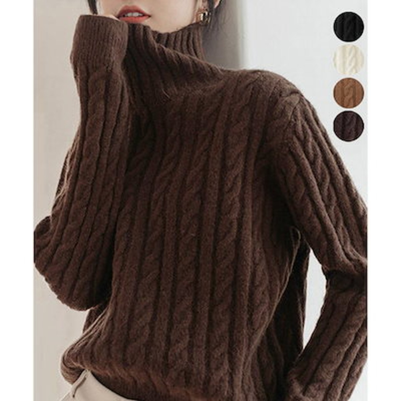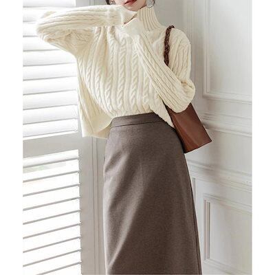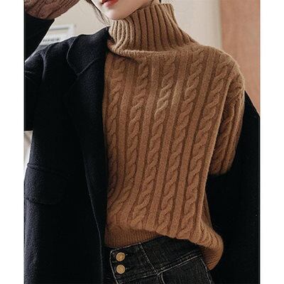 秋 冬 ファッションニット トップス レディース タートルネックニットトップスケーブル編み 韓国