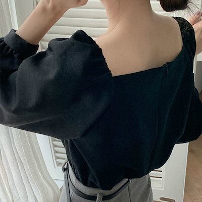 レディース 上着 シャツ ブラウス トップス Tシャツ スイートハートネック ハートシェイプドネック ベーシック コットン 角襟 体型カバー 日常着 お洒落 肌見せ 普段着 着痩せ 夏 春 秋 冬カジ | DOKO-ME