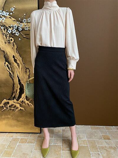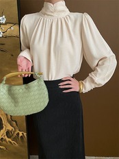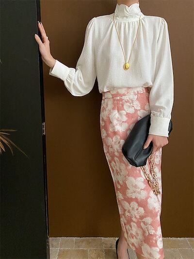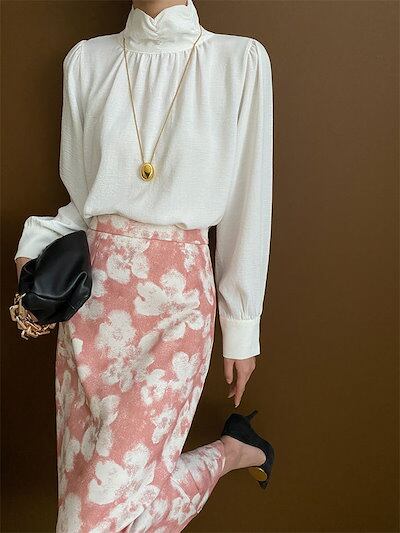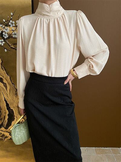 ハイネックブラウス レディース 春 秋 長袖 ハイネック シャツ トップス 白ブラウス おしゃれ きれいめ 大人可愛い カジュアル 体型カバー 立ち襟 通気性 お呼ばれ 通勤 卒業式 卒園式 入園式 | DOKO-ME