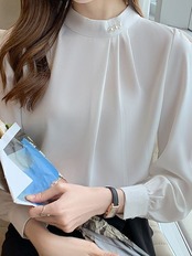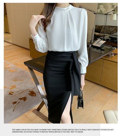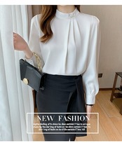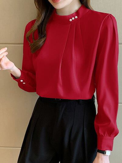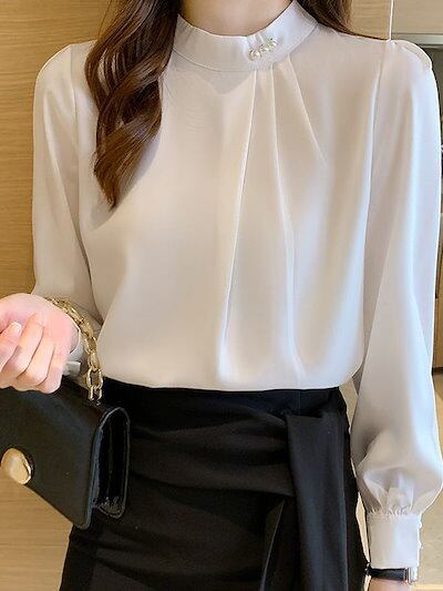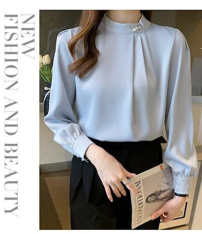 スイーヤ シャツ ブラウス レディース タック 立ち襟 ファッション パール風 体型カバー 着痩せ 長袖 エレガント おしゃれ 可愛い プルオーバー トップス 通勤 フォーマル 春 夏 | DOKO-ME