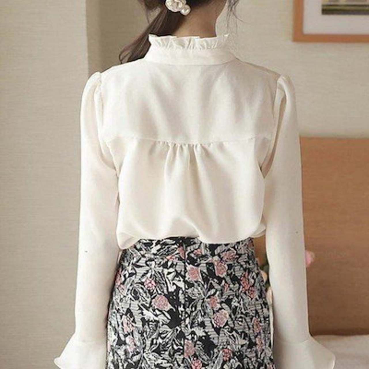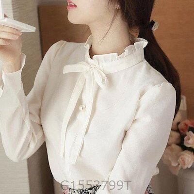 リボンブラウスレディース襟フリル長袖おしゃれ白ピンク可愛いかわいいリボンタイシャツ秋冬春立ち襟スタンドカラー春服演奏会フォーマル