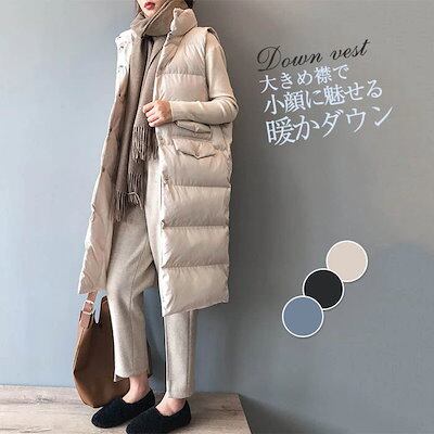 中綿ベスト ロング丈ベスト レディース 立ち襟 ノースリーブ トップス ダウンベスト チョッキ 20代30代40代 大きいサイズ OL 通勤 ママ 卒業式 アウター 着痩せ スリム 無地 カジュアル3 | DOKO-ME