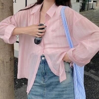 2024春夏トップス シャツ 長袖 ボタン 襟 スタンダードカラー シースルー ゆったり 細見え 夏 水色 おしゃれ かわいい カジュアル 韓国ファッション レディース お出かけ安い | DOKO-ME
