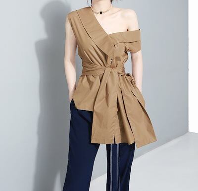 美肩 ストロップ ブラウス 斜肩 不規則風 おしゃれ レディース チュニック メガ割