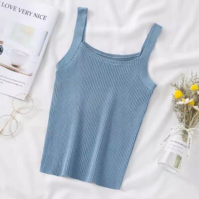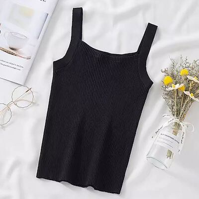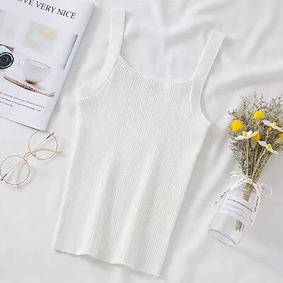 レディース トップス プルオーバー キャミソール サマーセーター サマーニット インナー 袖なし ノースリーブ スクエアネック 襟なし スリム 細身 スマート 伸縮性 ストレッチ かわいい 大人可愛い | DOKO-ME