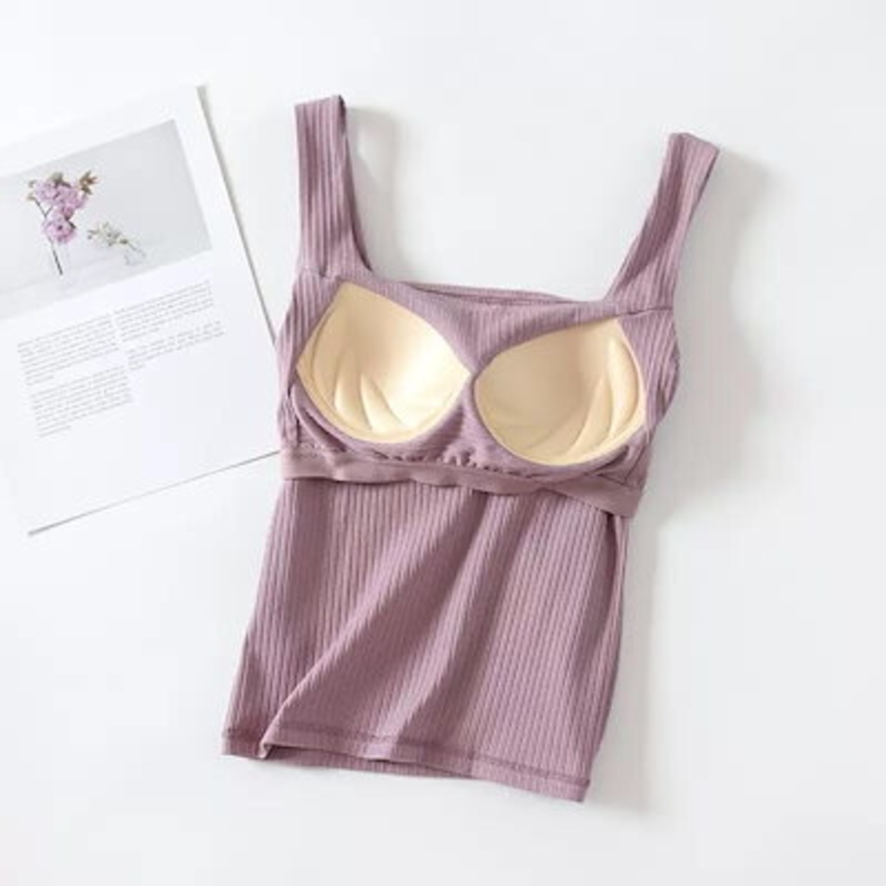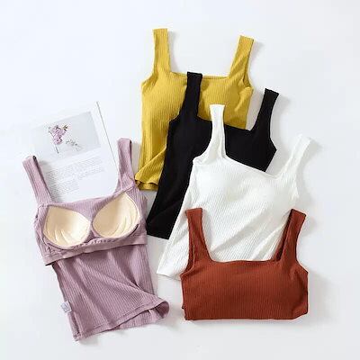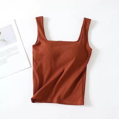 レディース トップス キャミソール ノースリーブ インナー スクエアネック パッド付き 無地 スリム 細身 きれいめ 上品 おしゃれ お洒落 大人可愛い かっこいい 大人女子 カジュアル シンプル | DOKO-ME