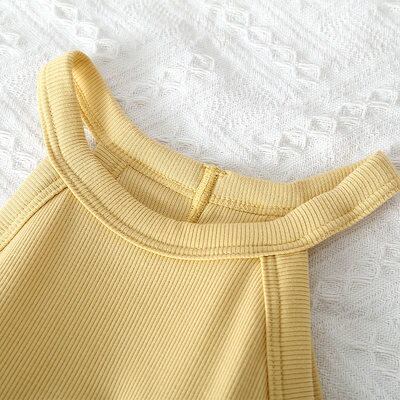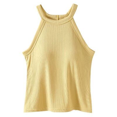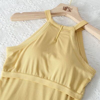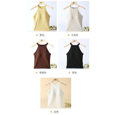 カップ付き タンクトップ レディース ホルターネック トップス リブニット ブラトップ キャミソール ノースリーブ 無地 シンプル カットソー ストレッチ