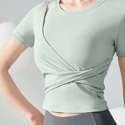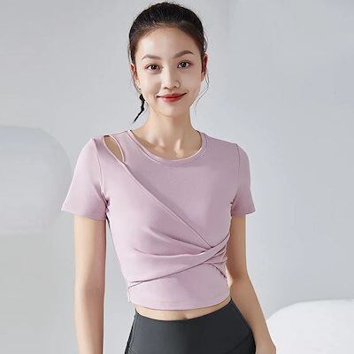 トップス おしゃれ スリミング 弾力 ジムウェア 透かし彫り 露の肩 デザイン ショート 運動Tシャツ 速乾性ウェア tシャツ 半袖 レディース