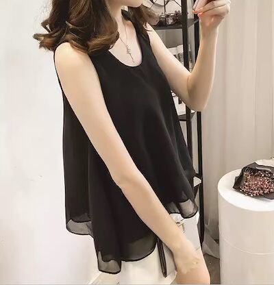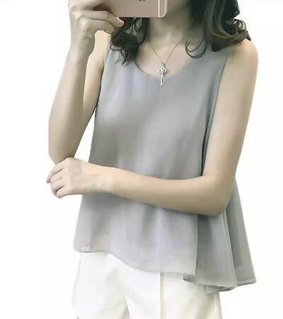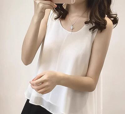 レディース トップス カットソー プルオーバー インナー タンクトップ ミドル丈 袖なし ノースリーブ フェミニン シフォン 異国風 かわいい 大人可愛い きれいめ シンプル カジュアル おしゃれ | DOKO-ME