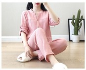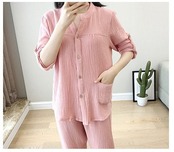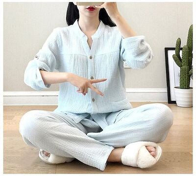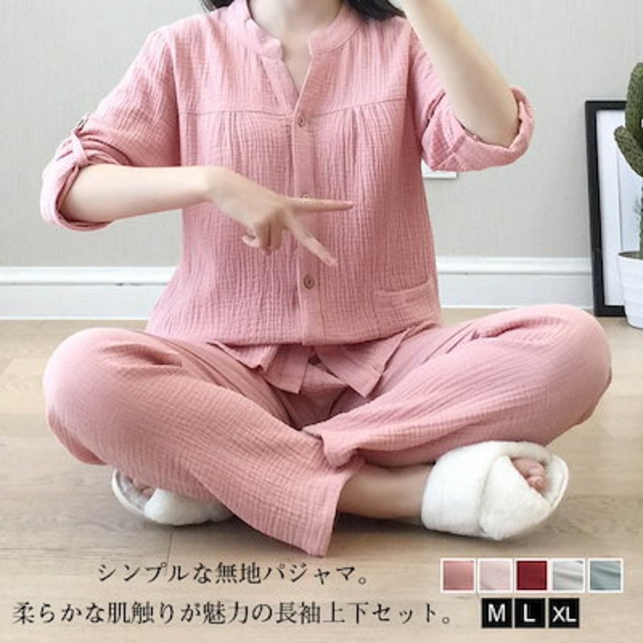 パジャマ ダブルガーゼ レディース 綿 ルームウェア ガーゼ 部屋着 無地 長袖 パンツ Vネック セットアップ 2点セット コットン 上下セット 寝間着 前開き シンプル ナチュラル ゆったり 大き | DOKO-ME