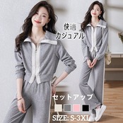 新作 セットアップ 2024人気春服 セットアップ レディース カジュアル おしゃれスウェット上下セット春夏 薄 快適 長袖トップス/ハイウエストパンツ二点セット運動着/部屋着 運動会 ジャージセット | DOKO-ME