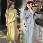 夏 涼しく楽ちんセットアップ 2024 上下2点セット Tシャツ/スカート セットアップ レディース カジュアル 怠惰な風 上下セット スウェット 半袖 レディース 部屋着 ジャージ | DOKO-ME