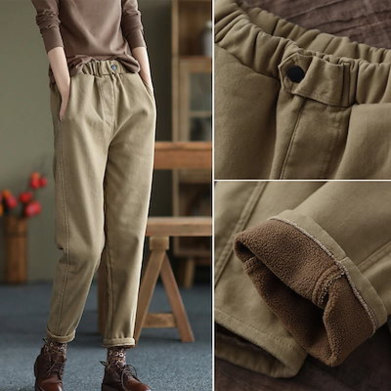 ひんやりボトムスかっこいい!スラックスパンツ秋冬 ゆったり 裏起毛 厚手 レディース パンツ オシャレ おしゃれ 体型カバー ロングパンツワイドパンツコーデュロイズボン脚長効果!スキニーパンツ | DOKO-ME