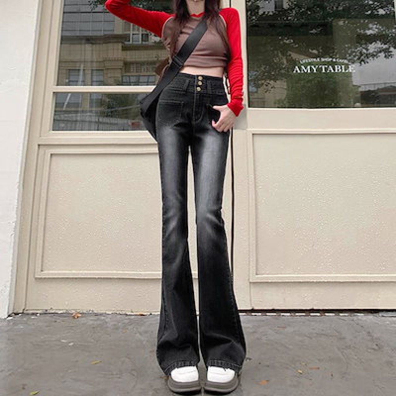 韓国ファッション 夏 ジーンズ スキニー レッグ ハイウエスト おしゃ 細見え ジーンズ レディース ワイドパンツ 着痩せ ワイドパンツ デニム デニムボトムス デニムパンツ ひんやりボトムス | DOKO-ME