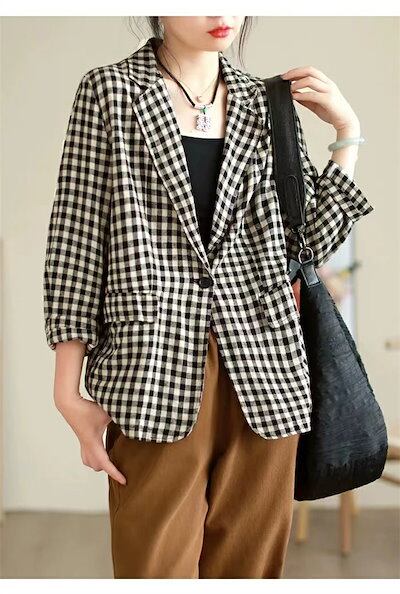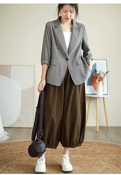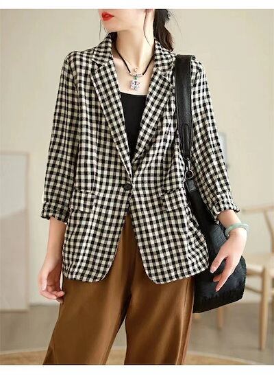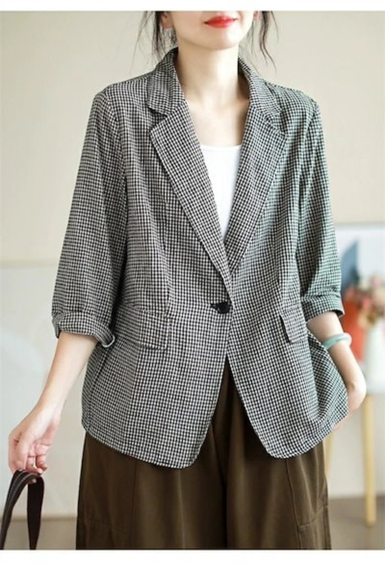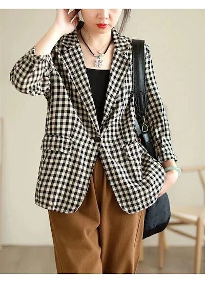 テーラードジャケット チェック柄 秋 レディース アウター 大きいサイズ スーツ ギンガムチェック ジャケット トップス アウター コート 羽織 ゆったり カジュアル 大人 通勤 仕事 カジュアル 体 | DOKO-ME