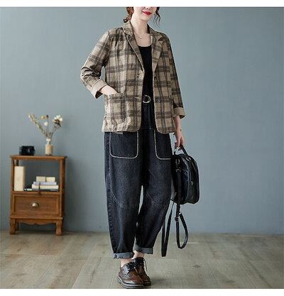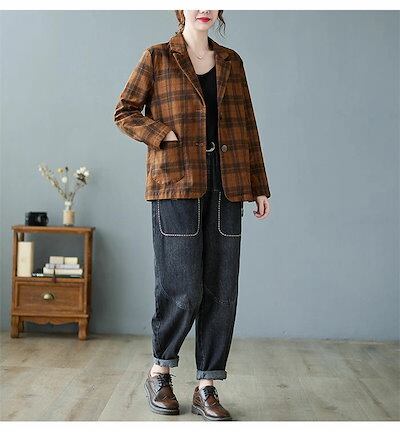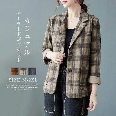 テーラードジャケット チェック レディース 秋 春 大きいサイズ スーツ チェックジャケット トップス アウター コート 羽織 ゆったり カジュアル 大人 通勤 OL ビジネス カジュアル 体型カバー | DOKO-ME